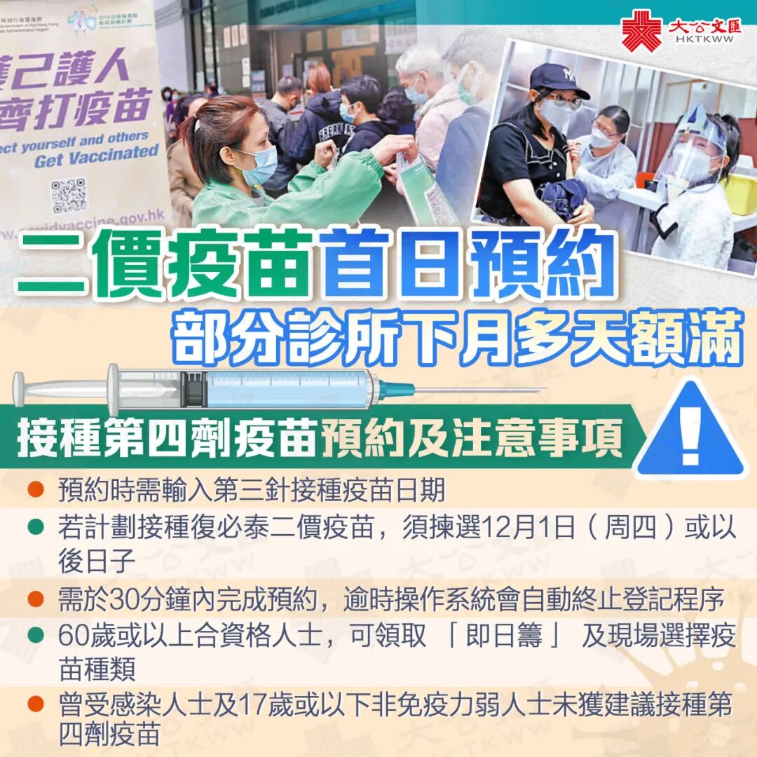 5.復必泰二價疫苗開啟預約,部分診所下月多天額滿,周六荃灣愉景新城辦親子嘉年華可即場打針。