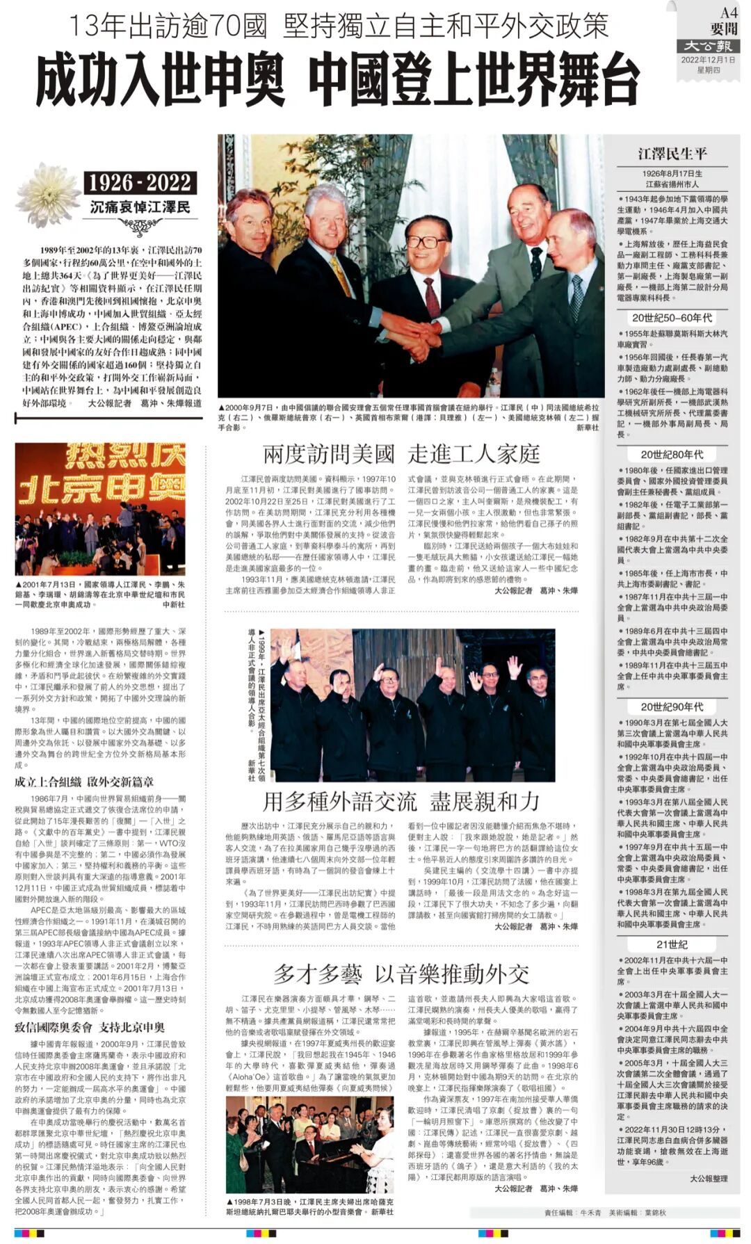 APEC是亞太地區級別最高、影響最大的區域性經濟合作組織之一。1991年11月,在漢城召開的第三屆APEC部長級會議接納中國為APEC成員。據報道,1993年APEC領導人非正式會議創立以來,江澤民連續八次出席APEC領導人非正式會議,每一次都在會上發表重要講話。2001年2月,博鰲亞洲論壇正式宣布成立;2001年6月15日,上海合作組織在中國上海宣布正式成立。2001年7月13日,北京成功獲得2008年奧運會舉辦權。這一歷史時刻令無數國人至今記憶猶新。