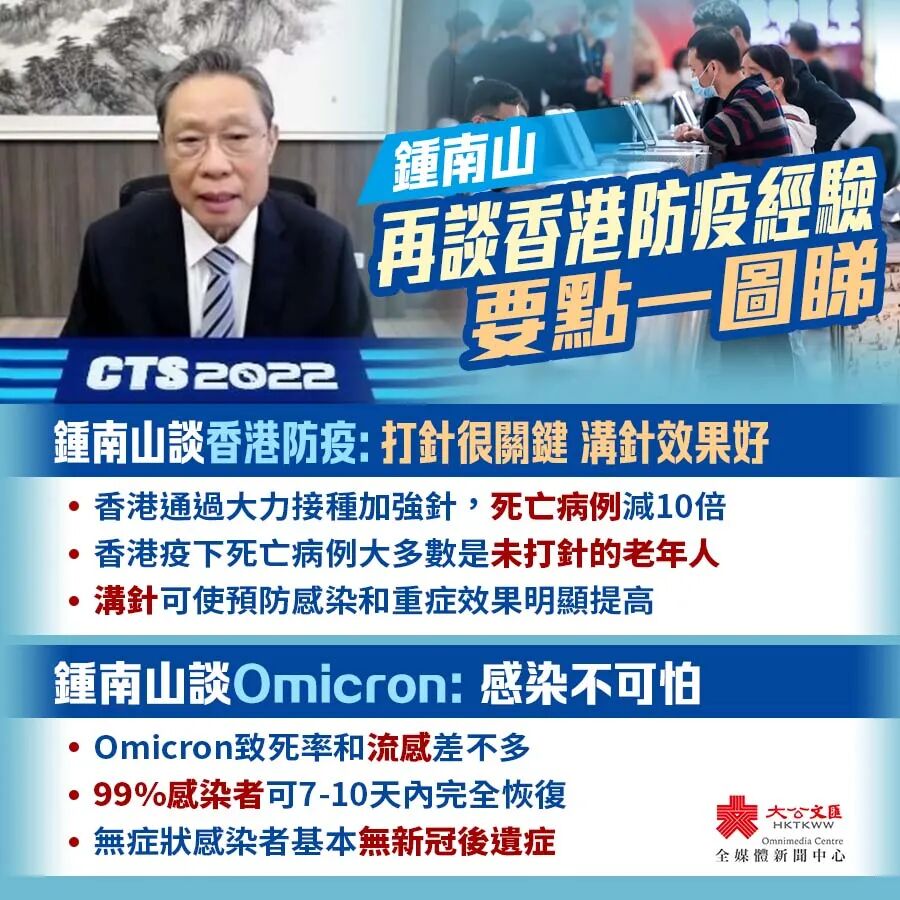 1.鐘南山院士表示,奧密克戎(BA.4/5,BF7)感染不可怕,99%可在7-10天內完全恢復,重點應放在防控重症上。