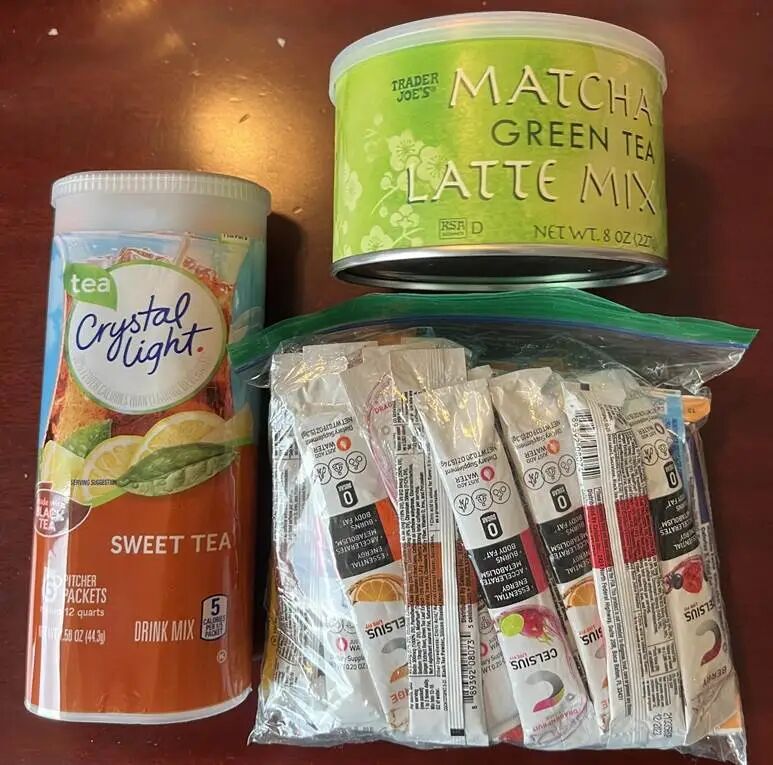 ◻ Crystal Light packs/Gatorade powder (or any other drink powder to add to water bottles)