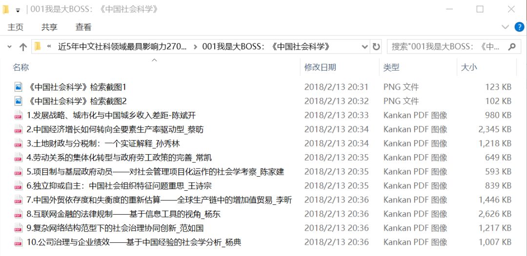 打开其中一个文件夹,比如“001我是大BOSS:《中国社会科学》”文件夹: