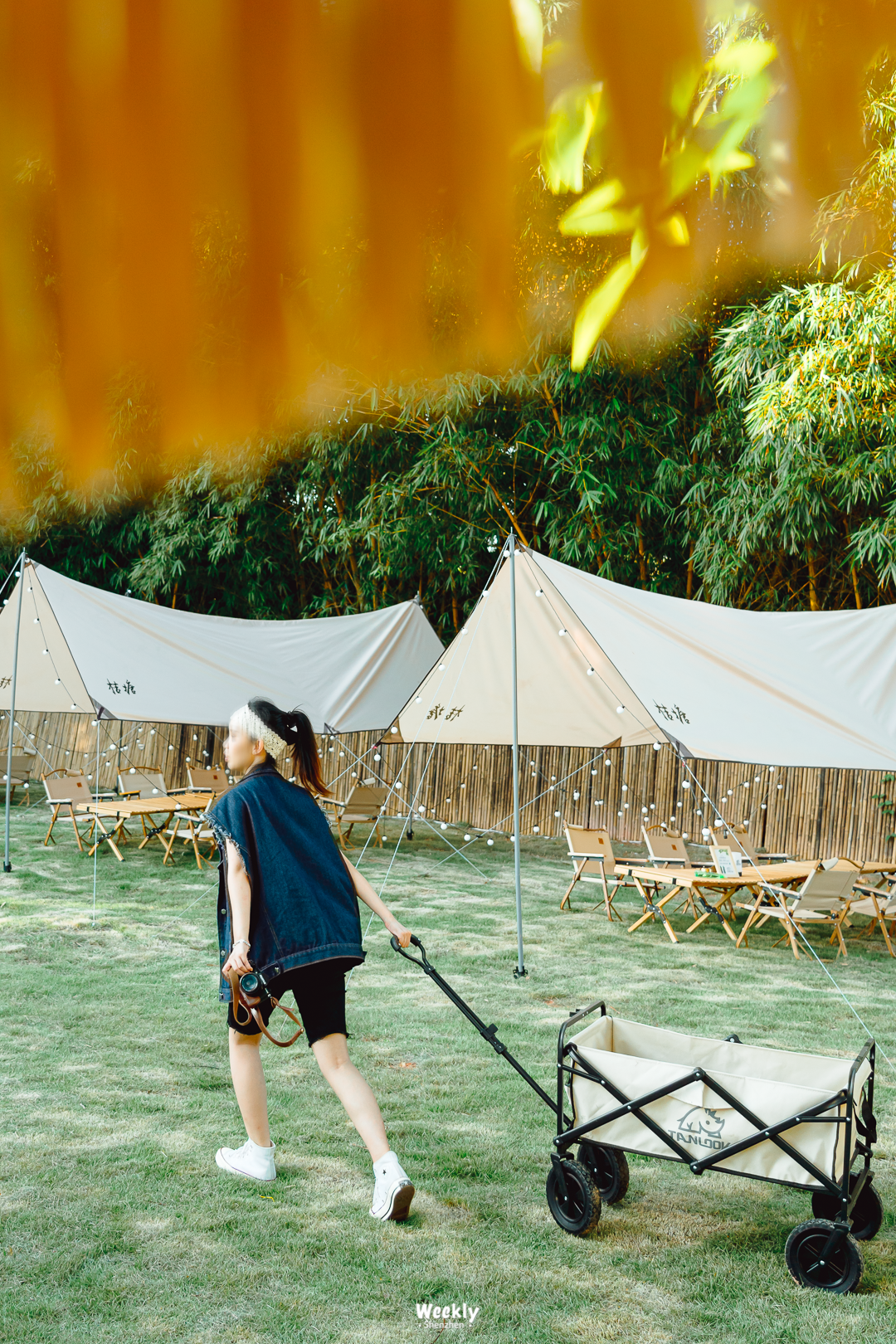 桔塘小院专门划分了一处露营区域,天幕、露营椅都已经搭好,不用多费力气,也能获得贴近自然的松弛。