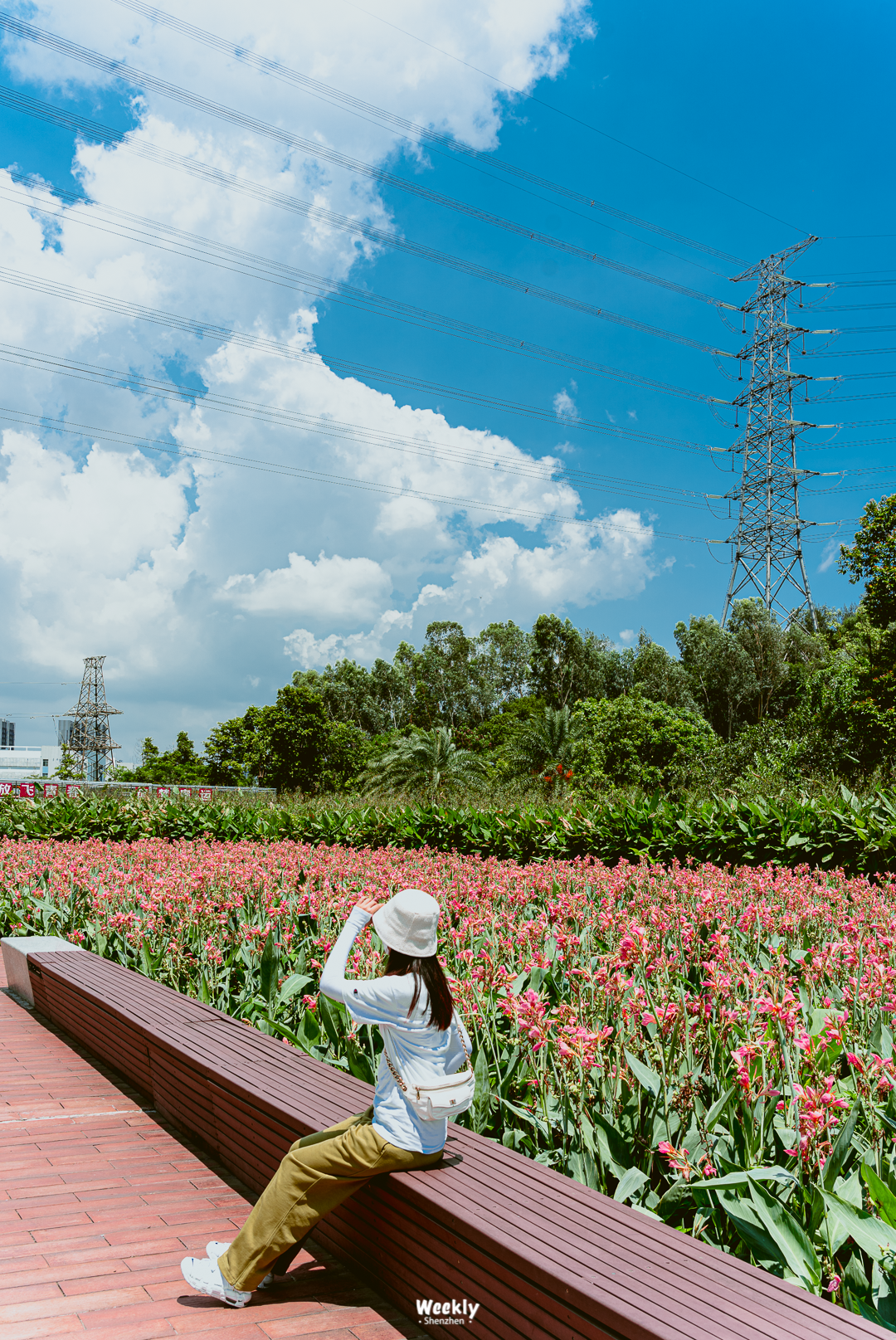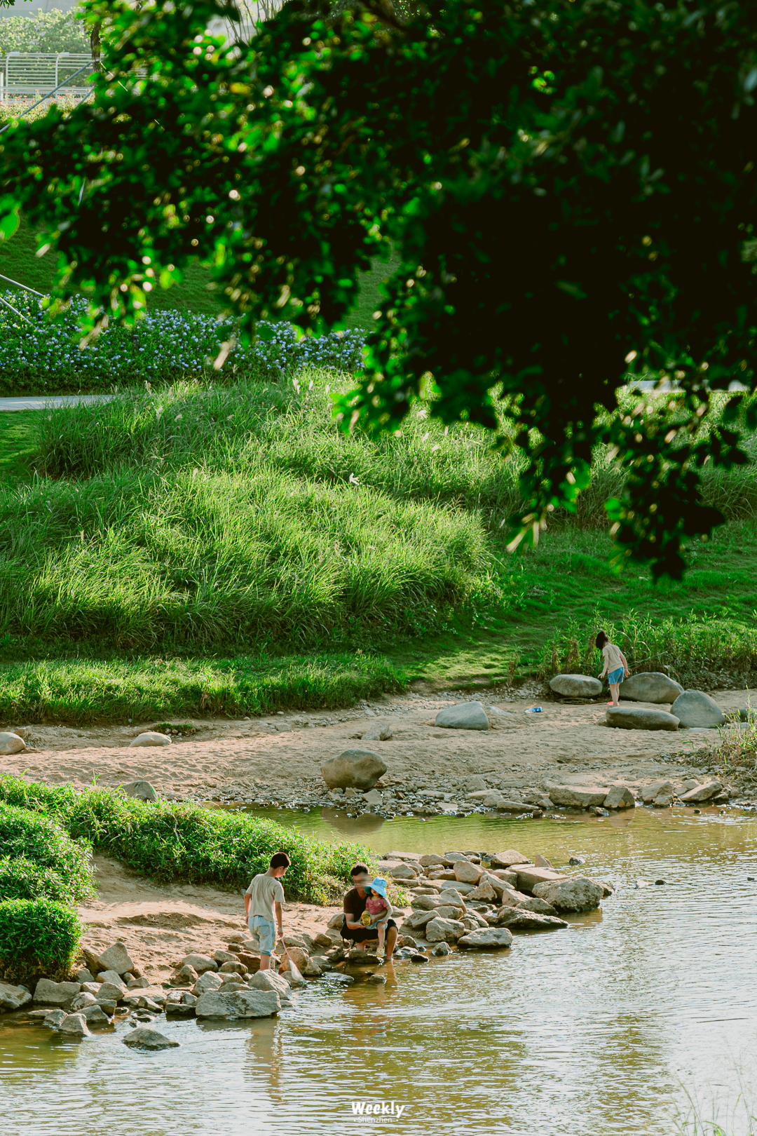 公园内有成片的美人蕉花海盛放,可以踏花而行,也可以顺着栈道在高处一览花海的全貌。园区不算大,但因为有一条水浅的小溪可供周边居民休闲解暑,因此这里的人流并不算少,如果遇到周末,建议尽早入园。