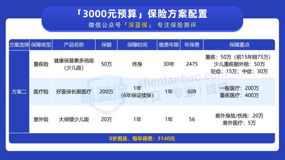 我们以 “0 岁男孩、预算 3000 块” 为例,一起来看下 3000 块能搭配什么样的方案: