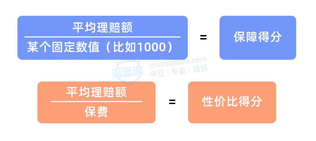 平均理赔额,就是衡量一款产品保障好不好的原始数据。不过这个数据一般都很大,会有几万或十几万,为了便于理解,我们会将这一数据进行 “无损加工”,最终得到两个分值:
