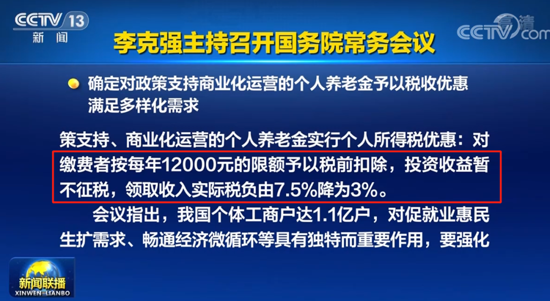 3、领取个人养老金的税率由7.5%降到3%