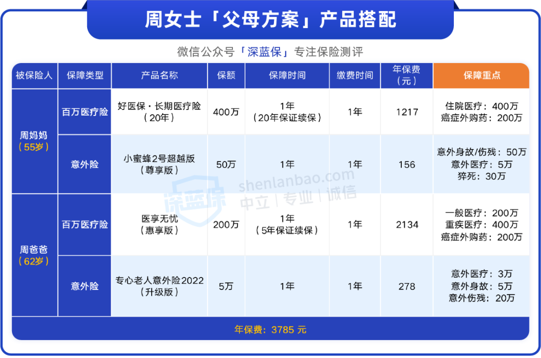 第二套方案是我们为赵女士父母配置的方案,两位身体都有些问题。