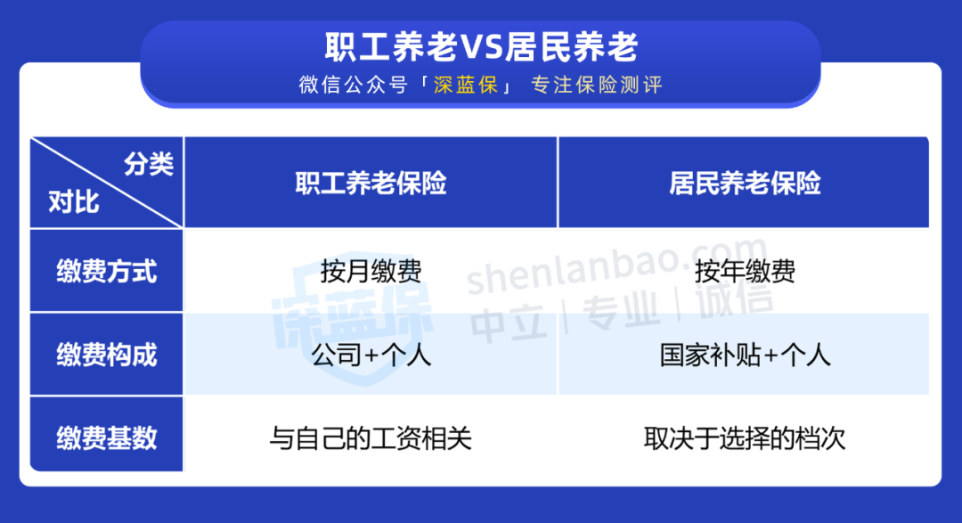 看不懂没关系,我们直接说结论:小王 60 岁退休后,每月大概能领 2.4 万元。那么小王退休后每月的养老金= 18077 + 6238 = 24315 元上文中的小李,每年缴纳深圳市第八档居保养老金 3600 元。虽然居民养老保险按年缴费,但和职工养老保险一样,退休后都是按月领钱。假设 小李缴纳居民养老 35 年,60 岁退休,每年的缴费档次、政府基础标准、政府补贴涨幅都按照 5% 来计算。我们直接说结论:小李 60 岁退休后,每月大概能领近 5000 元。小李每个月领到的养老金 2417 + 2537 = 4954 元通过上文,我们得知,在同样的缴费年限和增长率下,小王每年交的钱是小李的 2.6 倍左右,但小王领的钱却是小李的 5 倍。看到这里,数学不好的同学一定很头痛,分享一个解决办法给大家:近年来好多省市都推出了微信版或网页版的“养老金计算器”,可以在各省市社保局官网搜索找到。下面我们以深圳为例为大家演示一下。如果是上班族,只能交职工养老保险,没得选。如果是自由职业者,可能会考虑交职工养老还是居民养老的问题。如果经济条件允许,建议自由职业者交职工社保。虽然各地政策有差异,但通常来说,职工社保待遇都会更好。如果觉得自己交职工社保压力大,也要参加居民社保,有社保一定比没有好。若不幸去世,无论是参加职工养老保险还是居民养老保险,个人账户中的钱都会 连本带息 由亲属继承。除此之外,还有丧葬补助金、抚恤金等死亡待遇。所以,你的养老保险不会白交!各地的丧葬补助金、抚恤金政策不同,我们以深圳市为例。上文中的小王,只要他 参保满 6 个月 ,若不幸去世,家属可领取丧葬补助金,标准为:去世时去年当地月社平工资的 3 倍。上文中的小李,若不幸去世,家属可一次性领取 5000 元的丧葬补助金。以小王为例,需要参保满 6 个月。以小王供养亲属的数量为标准,一次性领取。关于养老保险待遇的问题,我们还整理了以下常见疑问,帮助大家进一步了解。好多人有这样的概念:职工养老只有职工才可以交。其实个体户也能以灵活就业人员的身份交职工养老。