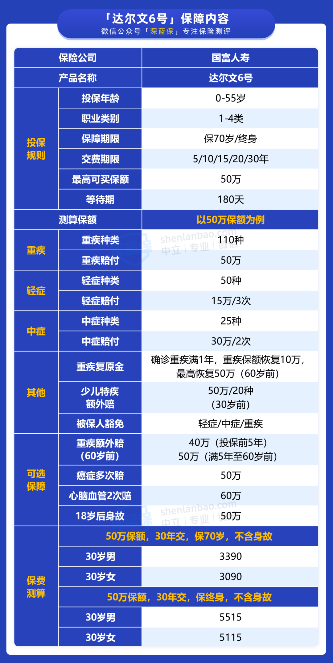 这不,就在昨天,国富人寿上线了一款新重疾险——达尔文 6 号,60 岁前最高额外赔 100%,买 50 万赔 100 万,价格也不贵。