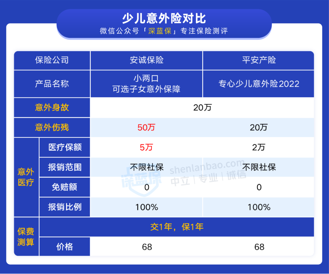 如果想买 50 万保额:可以考虑 小蜜蜂 2 号(尊享版),意外医疗报销门槛低,不限社保,没有免赔额。