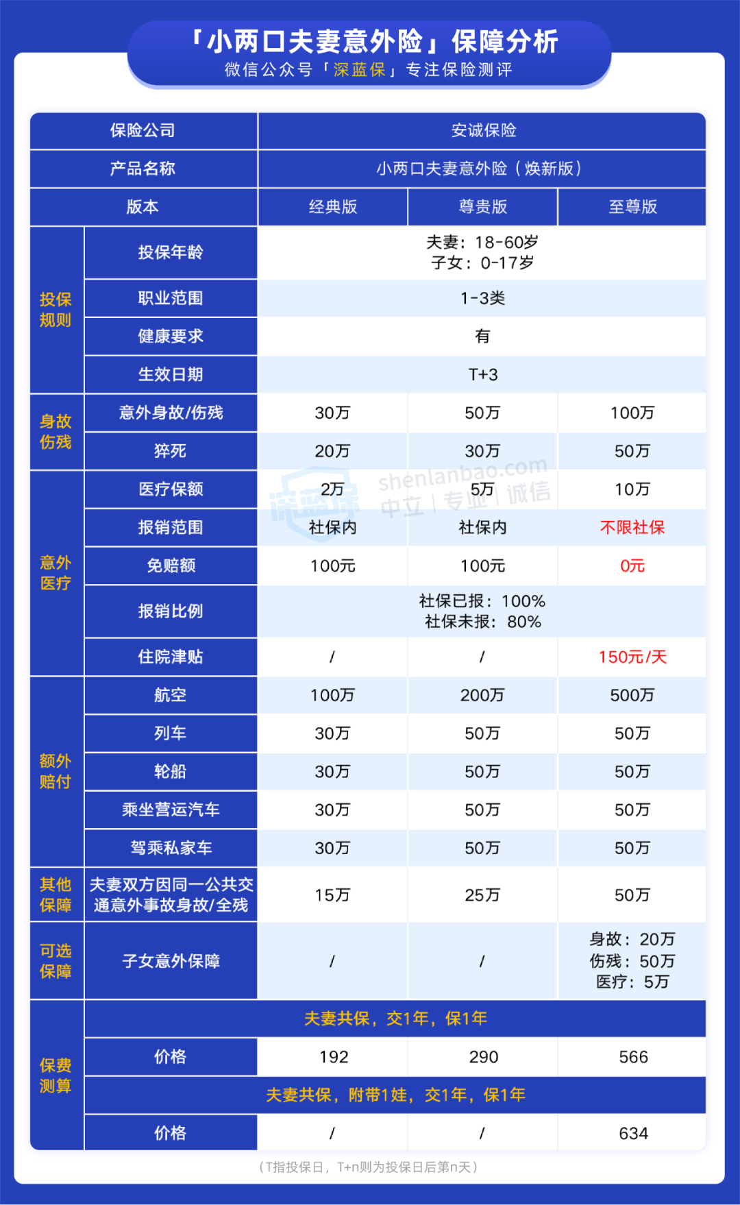 如果想买 100 万保额:可以考虑 大护甲 3 号 pro(至尊版),保障全面,意外医疗报销条件友好;若是夫妻投保,也可以考虑 小两口夫妻意外险(至尊版),夫妻在同一公共交通意外事件中不幸身故或是全残,可以获得额外赔付。