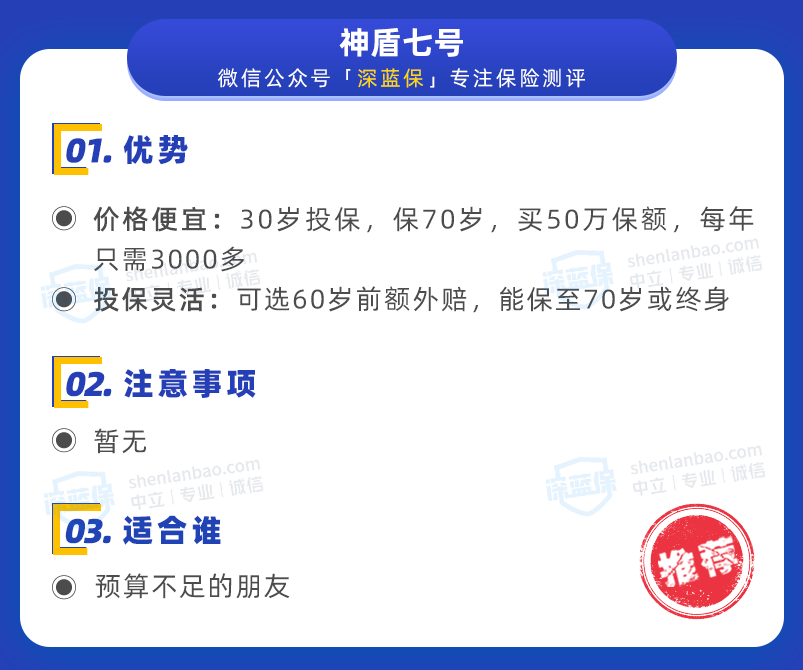 我们给大家准备了经济实用型榜单,适合预算有限的朋友。它的标准是:保到 70 岁的 消费型重疾,适合预算在 3000~5000 左右的朋友。