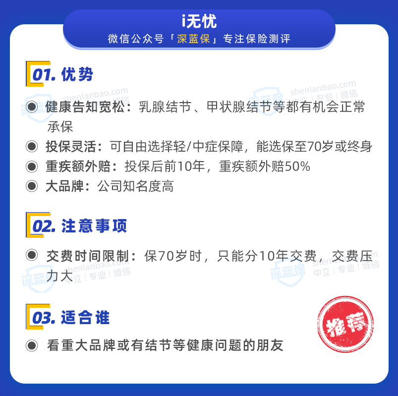 无忧人生 2022(点击了解)由国富人寿的承保,基础保障只有重疾,我们总结了它的优势和注意事项: