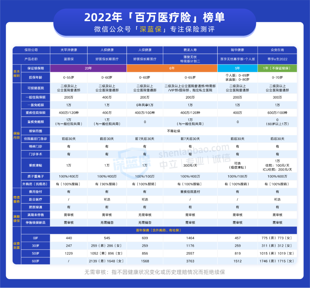 百万医疗险榜单