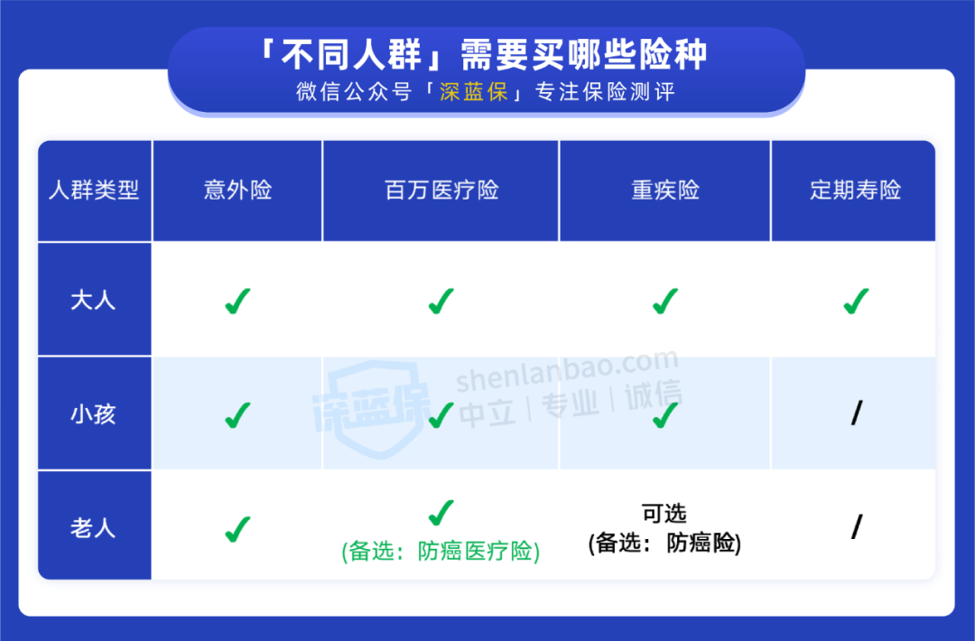 也就是说,不同人群要选的保险也不一样,大家可以看看下面的表格: