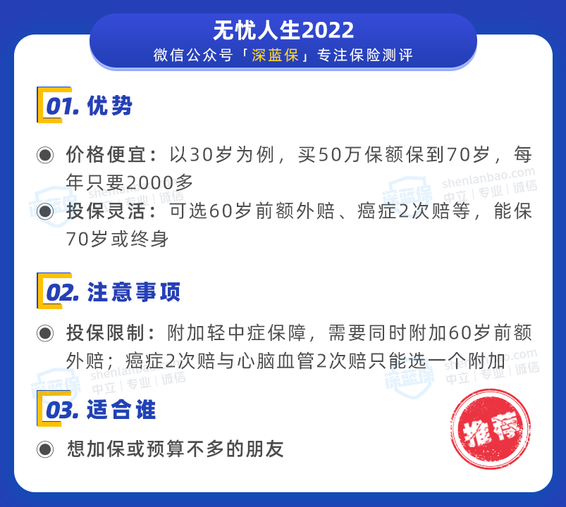 i 无忧 本身只有重疾保障,轻、中症保障需要自己附加,我们建议大家附加上,这样保障会全面一些。