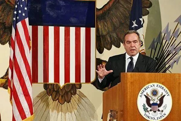 图为2009年时任美国国务院亚太助理国务卿坎贝尔在美国驻日本使馆召开记者会