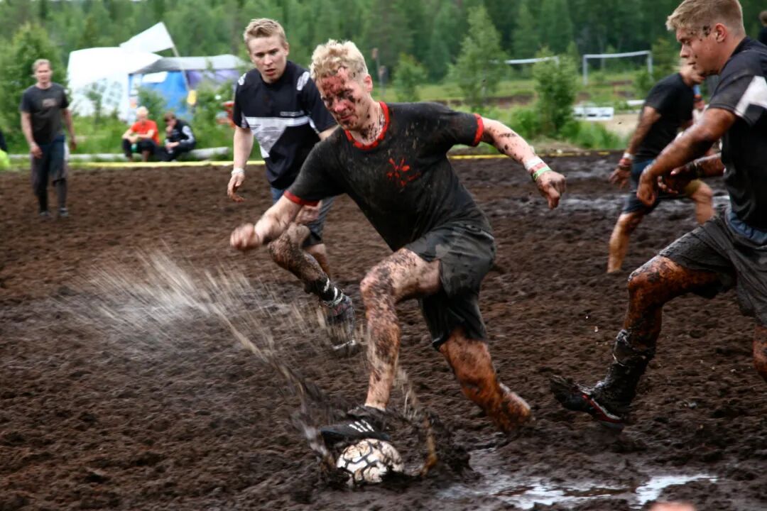 雪地足球对于生活在极寒地区的居民来说可能不是什么新鲜事,但在冰雪消融的夏日,芬兰人秉承“没有困难,创造困难也要踢”的精神发明了沼泽足球。据说,芬兰士兵和运动员曾以在沼泽或泥地踢球作为一项运动以强健体魄。1998年,第一届沼泽足球赛在芬兰举办。如今沼泽足球的总部已经挪到英国,但在芬兰凯努区,这项运动仍然保持了很高的人气。蒸桑拿大赛