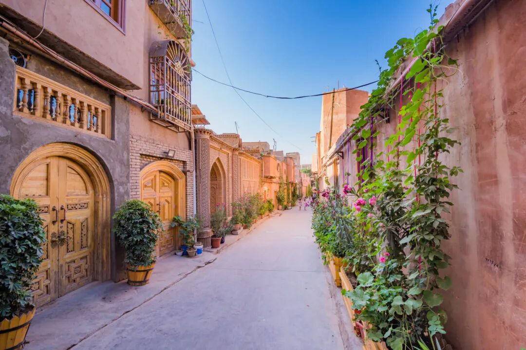 老城无疑是喀什的灵魂所在,在此逗留三五日都不算多。喀什老城是中国唯一保存下来的具有古典伊斯兰特色的历史街区,建筑是沿袭中亚风格的平顶方屋,在历代维吾尔族的生活中,它们被层层加高。几年前老城完成了改造翻新,墙面上贴满了立体的花砖,复古而光洁,有着夯土的颜色。虽然街巷依然弯弯绕绕,但每条巷子都标上了统一的路牌、介绍,走到哪里都有指示箭头,初来乍到的人也不必再担心迷路。