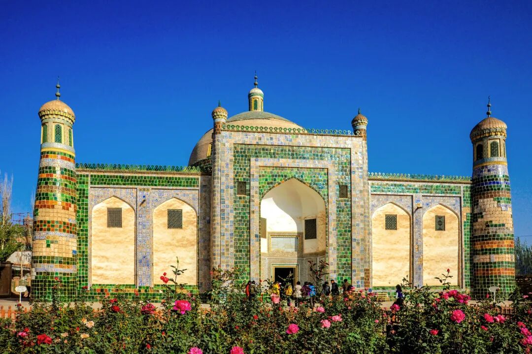 艾提尕尔是新疆规模最大的清真寺,也是南疆地区极少数开放参观的清真寺之一。它是喀什老城的中心,外围街道人声鼎沸,寺内始终宁静如初。穿过巨大的庭院,南北边各有一排教经堂,礼拜堂在寺院最西部的高台上,分为外殿和内殿,需脱鞋进入。雪白的长廊由上百根绿色的雕花立柱撑起,最中央的木雕藻井精美异常。侧墙上悬挂着一幅巨大的波斯地毯,这是1989年时任伊朗总统哈梅内伊来华访问时专程到艾提尕尔清真寺做礼拜时赠送的。在古尔邦节、肉孜节等重要节日,艾提尕尔广场都会被齐刷刷礼拜的穆斯林填满。位于喀什老城东北部的高台民居建于高40多米、长800多米的黄土崖之上,形成于16世纪,现今有600余户人家。维吾尔语中,高台民居叫“阔库斯亚贝希”,意为“悬崖上的陶罐”。这里的房屋用泥巴和杨木搭建而成,过街楼、小胡同、手工作坊随处可见,生土建筑比比皆是。这些房子像藤蔓一般,从悬崖底部攀爬到顶端,曲折环绕,甚是壮观,让人目不暇接。