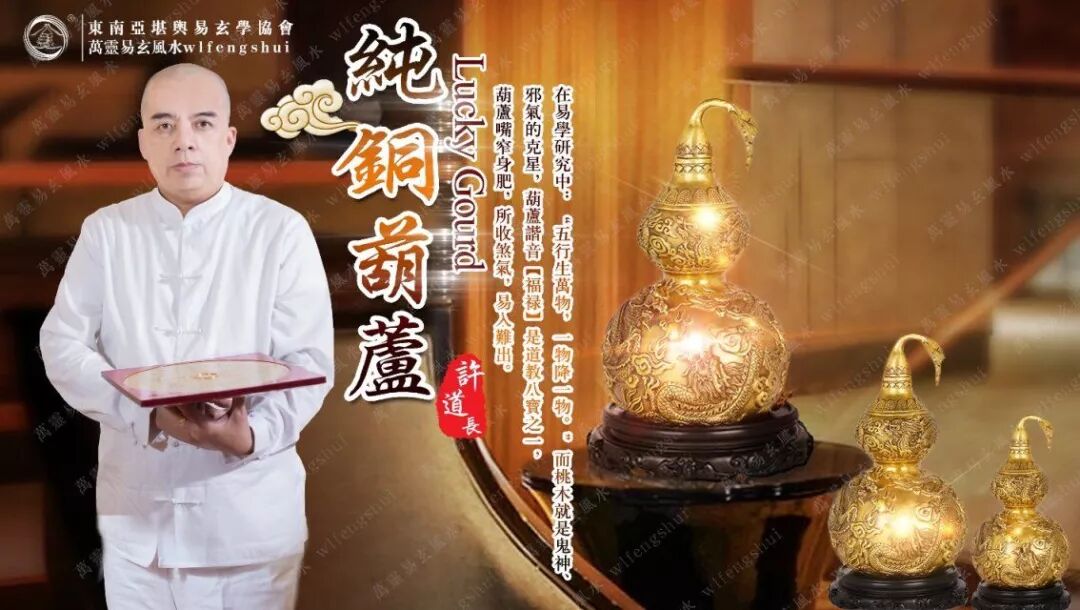 葫芦是医卜星相的象征,是盛载灵丹妙药的法器,专门能吸取秽煞之气,如横梁压顶、门冲煞等。
