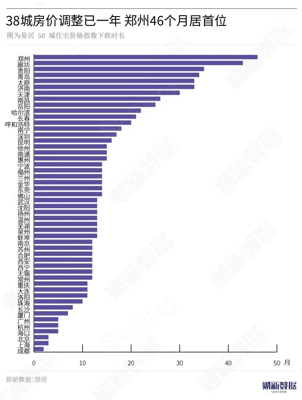 郑州和廊坊这种跨越周期的下跌,意味着楼市支撑力非常差劲,尤其郑州,现在还处于烂尾楼的阴霾中,在楼市实力层面,跌出强二线城市队列。