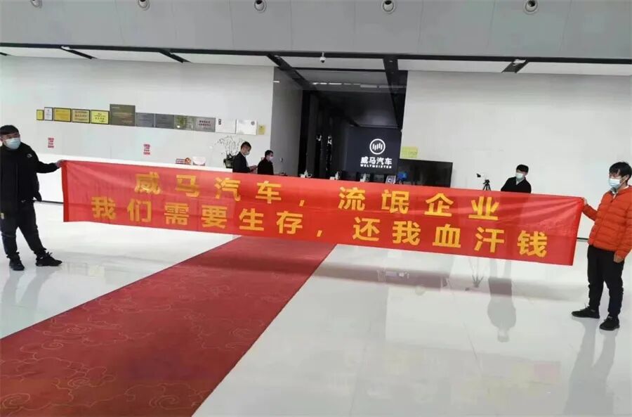 日前,有博主发布了两张图片,有人拉着内容为“威马汽车,无良企业;我们需要生存,还我血汗钱”横幅出现在了威马汽车公司中,该博主配文称:粉丝投稿,威马经销商疑似维权。
