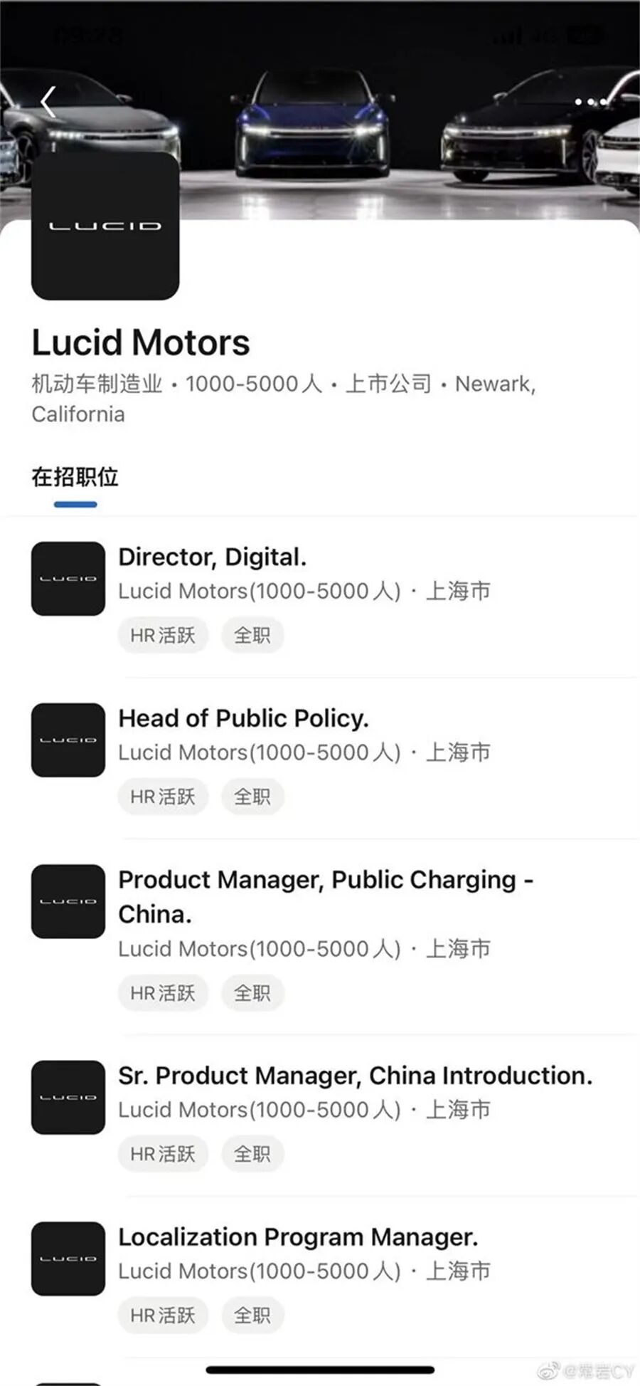 在美国曾被称为“特斯拉杀手”的新造车企业——Lucid Motors(下称Lucid)日前在官网上悄悄更新了数十则招聘信息,显示工作地点位于上海,其中招聘的岗位中涉及了数字信息化、硬件工程、法律、物流管理、供应链、零售等多个领域共14个岗位。