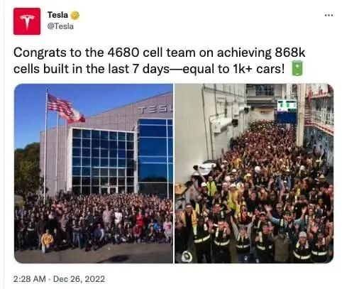 一周86.8万颗,那么其月产能就将超过370万颗4680电芯,足以表明特斯拉4680电芯的生产能力得到了明显提升。值得注意的是,此前特斯拉决定在德国柏林工厂同步生产4680大圆柱电池,但随着美国《减少通货膨胀法案》补贴政策的推出,特斯拉逐渐将4680的生产重心转移到美国本土,预计2023年起其将逐步提升在美国本土的4680电芯的生产效率和能力。