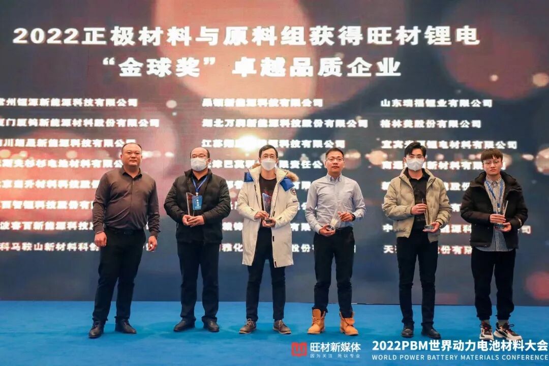 2022正极材料与原料组获得旺材锂电“金球奖”卓越品质企业