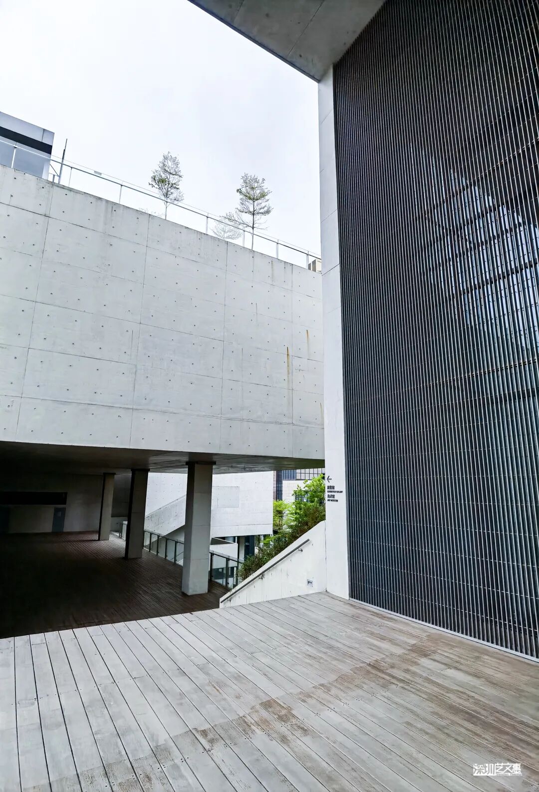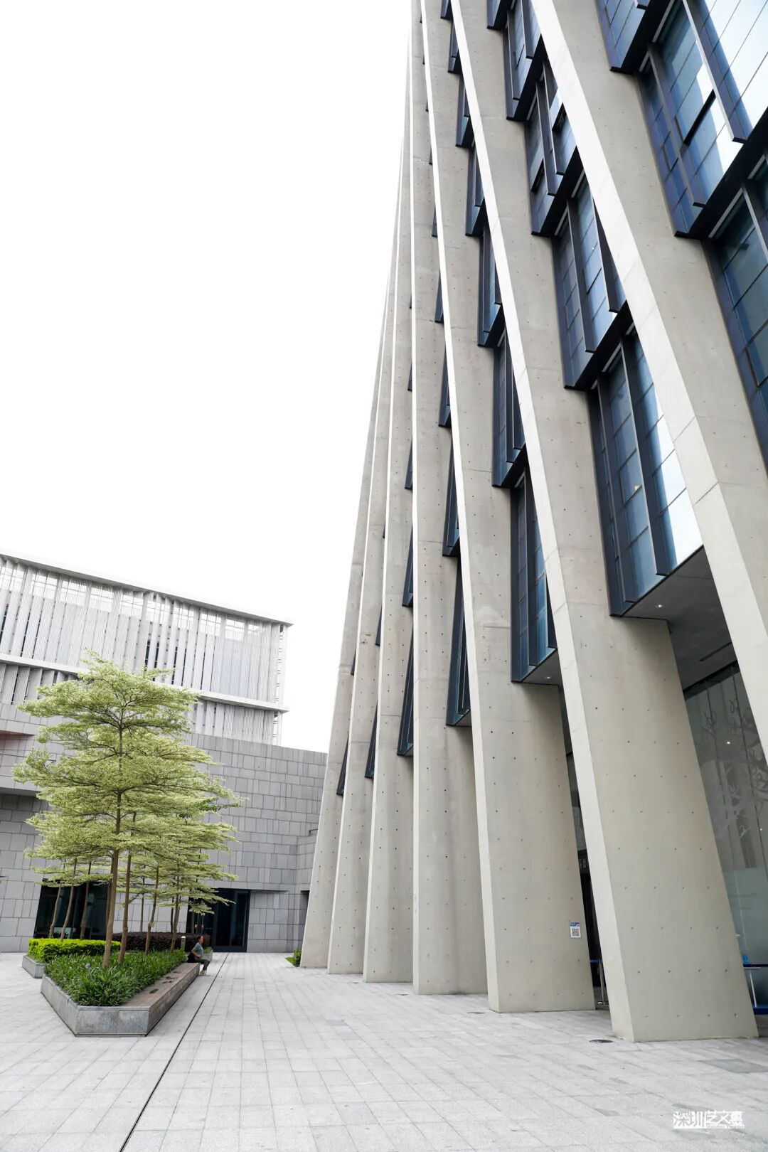 坪山美术馆位于坪山文化聚落建筑群组,由中国著名建筑师董功设计,建筑风格现代,设计理念开放。其次,设计师在三个主要功能建筑的底层采取了架空的策略,利用一个连续架起的两层高巨构体量将它们由南向北串联起来,将聚落中的各种共享功能置入其中。