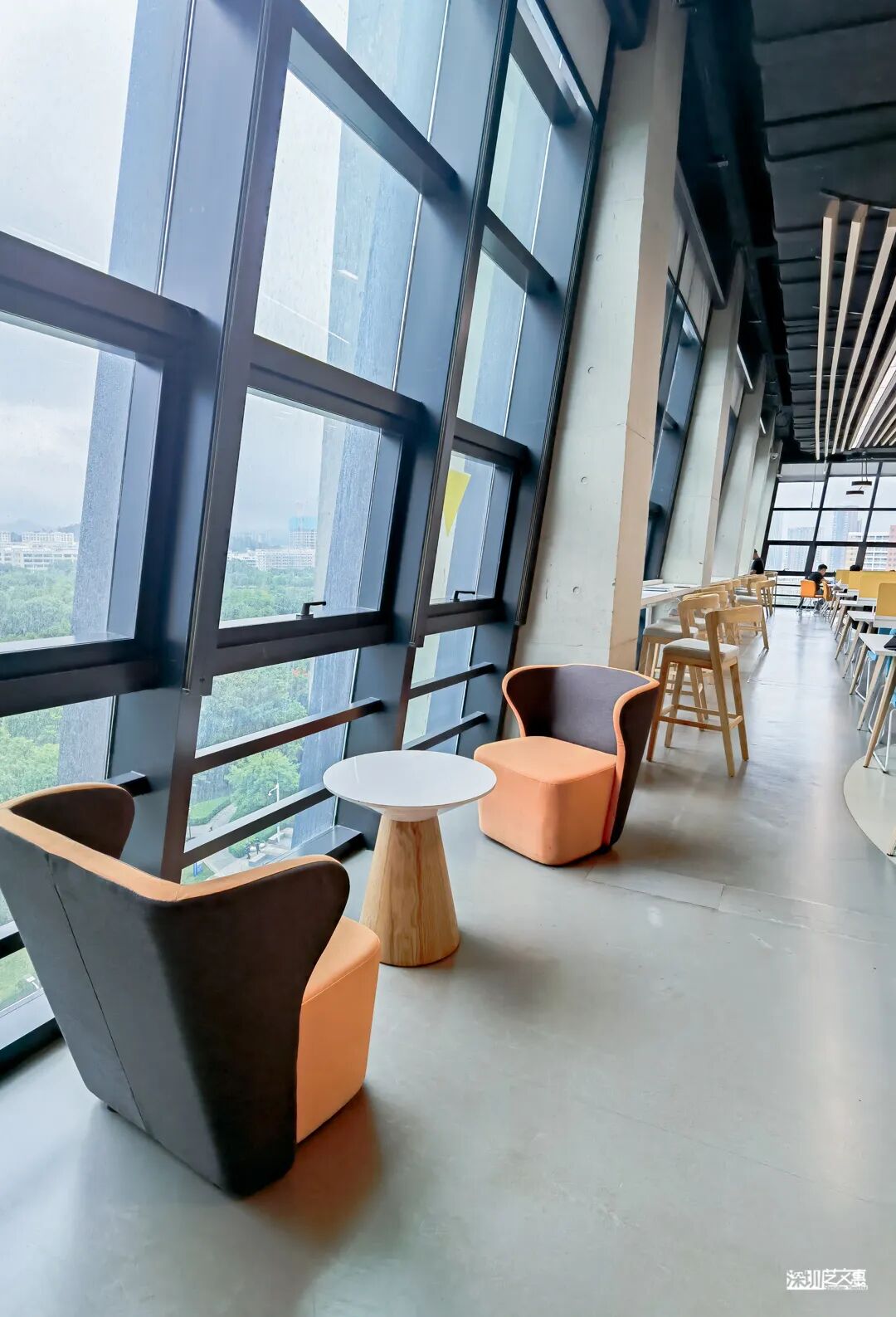 同样在坪山文化聚落建筑群组中的坪山图书馆,共10层,建筑面积为13200平方米。拥有阅览座位数800余个,设计总藏书量不少于120万册,纳入“深圳市图书馆之城”统一服务平台,实现全市范围内通借通还。