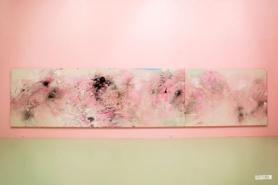 “桃花源”的线索缘起于艺术家周力2005年的“蜕变”系列,随着她对“人与自然”、“人对美好憧憬”的思考,2017年演化出了“桃花源”系列绘画,延续到2020-2022年,周力觉得这个系列才更加成立,因为它蕴含着我们正在当下现实中面对的复杂情感。