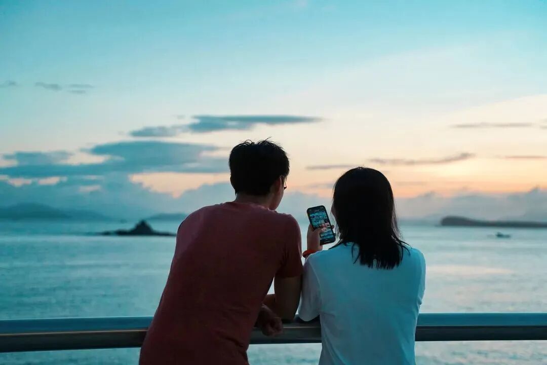 一边欣赏落日美景