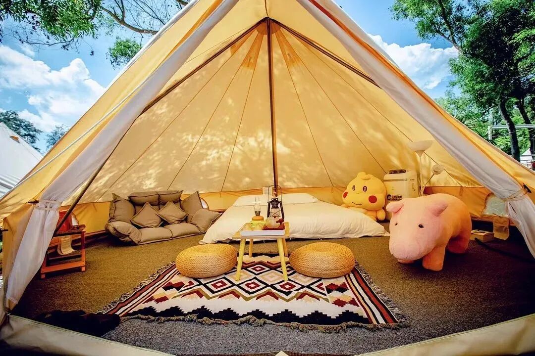 坐在帐篷里