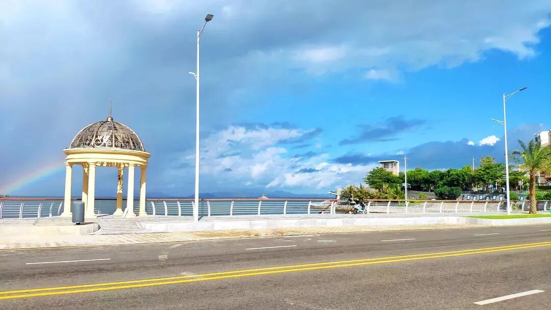 到海港路边散步