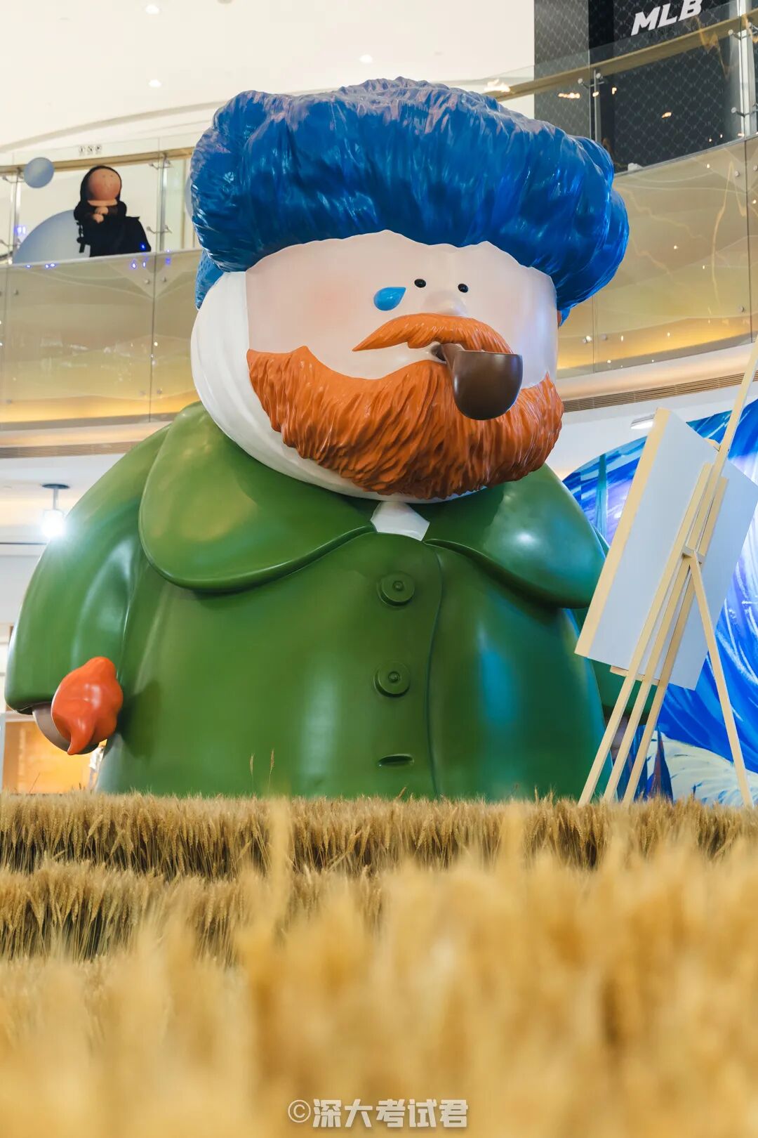 4米高的梵高,在他钟爱的繁盛麦田与星空间作画。麦浪、星空、风车,还原了梵高创作的景象。
