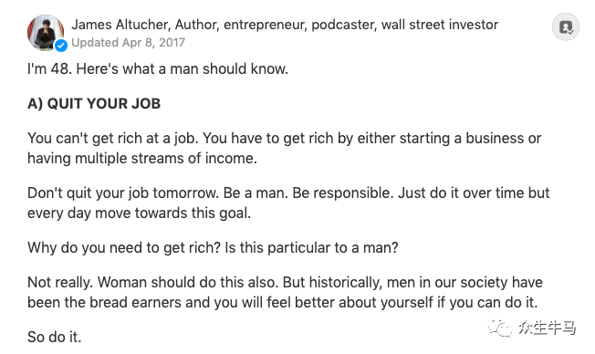 你无法通过工作致富(最起码大部分是这样的),想要致富,必须开始自己的生意,或者有多种收入来源。