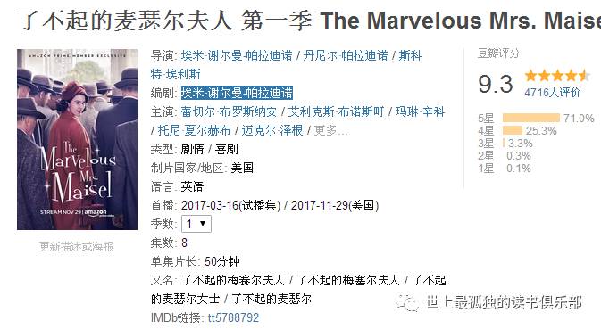 多么讽刺又微妙的故事,了不起的麦瑟尔女士,太迷人了!虽然现在只有一半可以看,还有一半是生肉,但我已经看了两遍。等翻译版的视频出来,我还等不及要多看几遍。最少三刷。