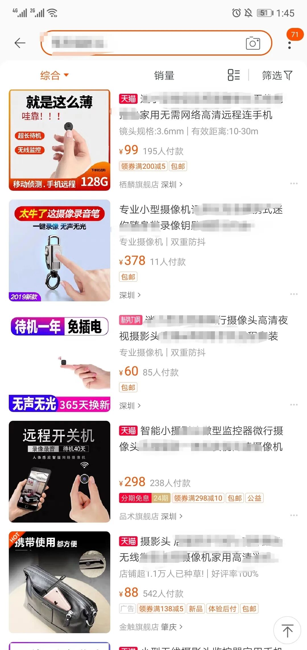 退一万步讲,针孔摄像机这种设备虽然已经在普通电商平台下架,走一般途径不那么容易买到。