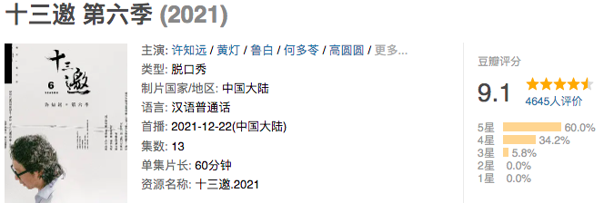 它就是从第一季开播到现在,豆瓣好评如潮,新出的第六季评分高达9.1分的