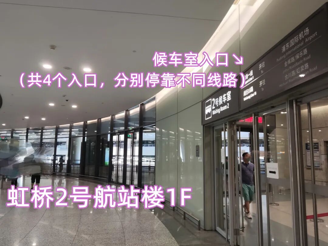 虹桥T2到达后乘坐电梯至一层,即可到达虹桥东交通中心站厅。站厅内共有2个候车室,每个候车室有2个入口,入口上方标有相应的公交线路名称,您可以进入相应候车室进站乘车。