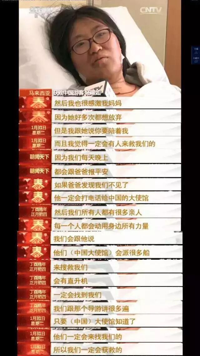 沉默片刻,她用微弱的语气说,很庆幸马来西亚的渔船及时发现我们,“如果再晚来一点,我们恐怕也熬不过那个晚上”。也感谢中国使领馆的牵挂和马来西亚政府的全力搜救,没有他们的努力,我们不可能获救。