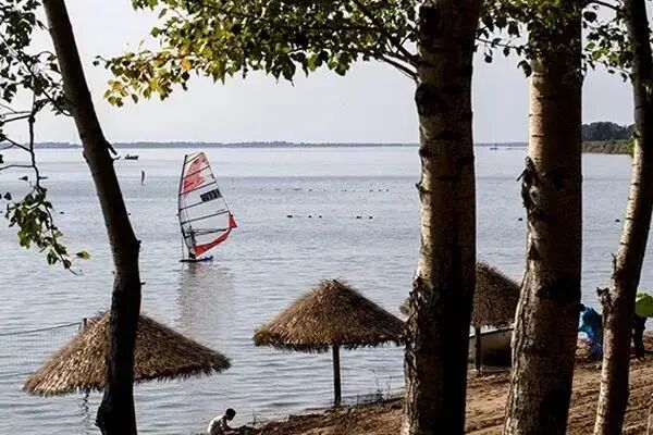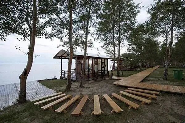 龙虎湖湖水浩瀚无垠,水清沙洁,是理想的天然浴场,又是游泳、滑水、驾舟、沙浴、消夏避暑的好地方,著名的湖天浴场就设在东侧湖湾,湖水无风时细波鳞鳞极为壮观。湖岸石板街宽敞明亮,新建的民族歌舞台每逢周末都将举办大型文艺演出,内容为蒙古族传统歌舞等。