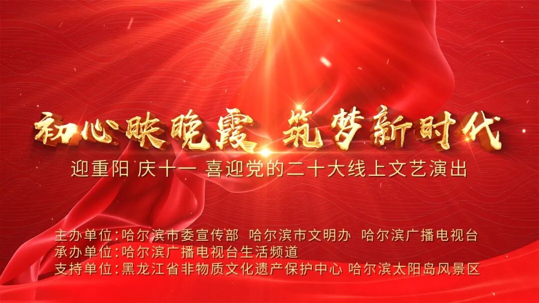 由哈尔滨市委宣传部、哈尔滨市文明办、哈尔滨广播电视台主办、黑龙江省非物质文化遗产保护中心支持、哈尔滨广播电视台生活频道承办的《迎重阳 庆十一 喜迎党的二十大线上文艺演出》于2022年十一假期播出。