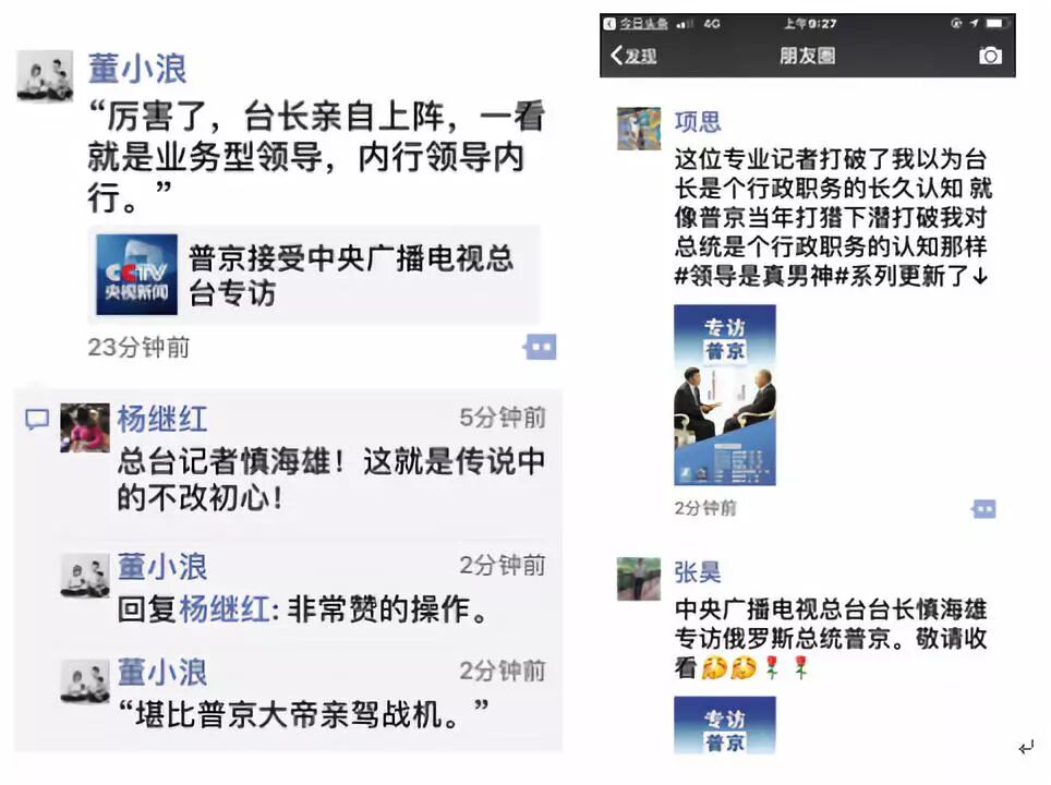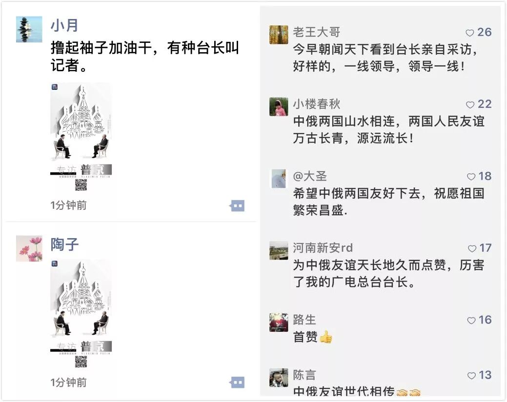 《传媒茶话会》发现,不到一天时间,中央广播电视总台台长慎海雄专访俄罗斯总统普京的图文视频刷遍网络。
