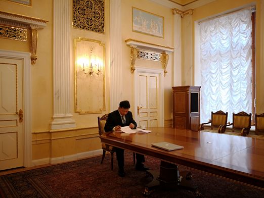 “我们是当地时间下午3点出发去克里姆林宫,实际上我们驻地离得很近,走路十几分钟就能到了,但因为拉着设备,车队要进,所以提前预留了时间。”中央广播电视总台央视新闻中心副主任杨华表示,原定于晚上7点进行的采访,专访团队下午3点就出发了,在经过安检、沟通、协调等流程后,专访团队在耐心等待普京总统到来。等待间隙,所有工种都不敢懈怠手头的工作,摄像设备全部待机随时准备开拍。一直到晚上10点多,所有人员依旧在为专访做最后的调试。