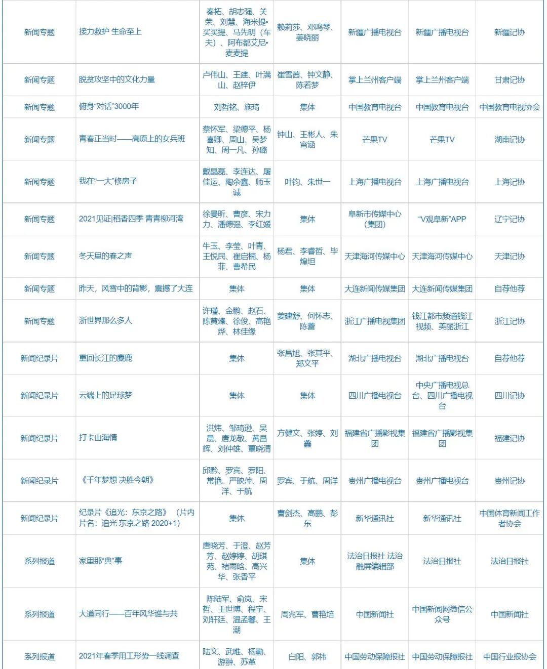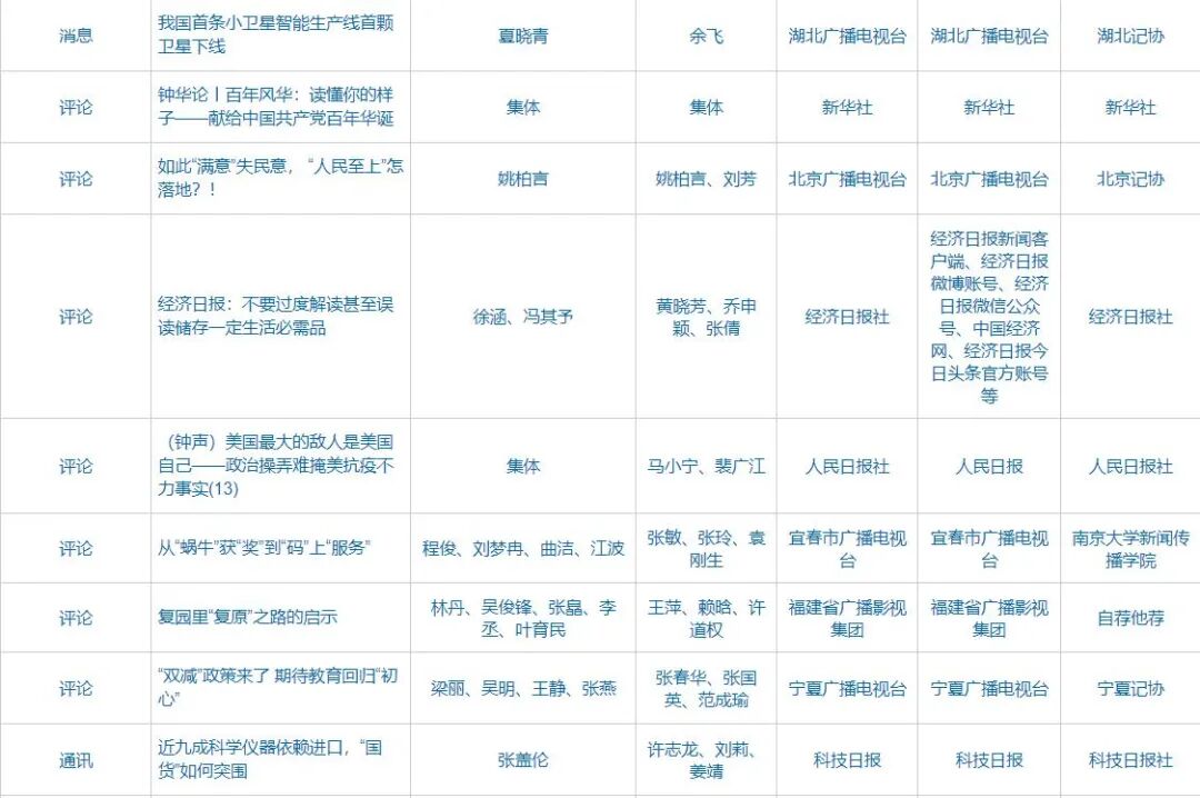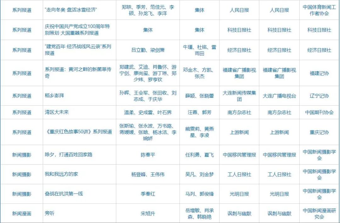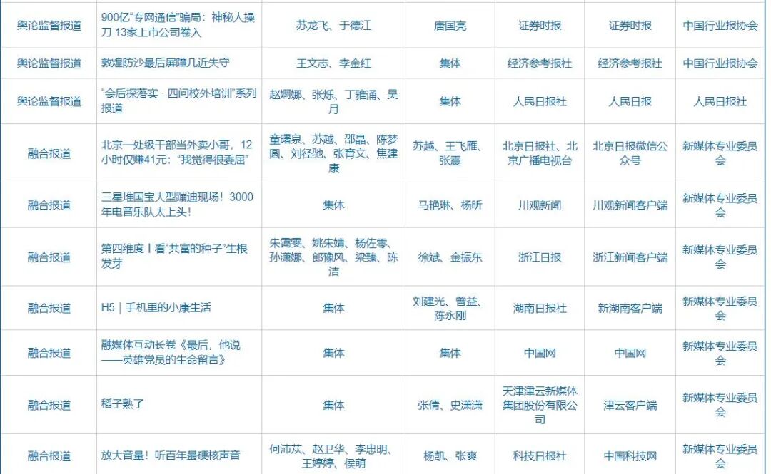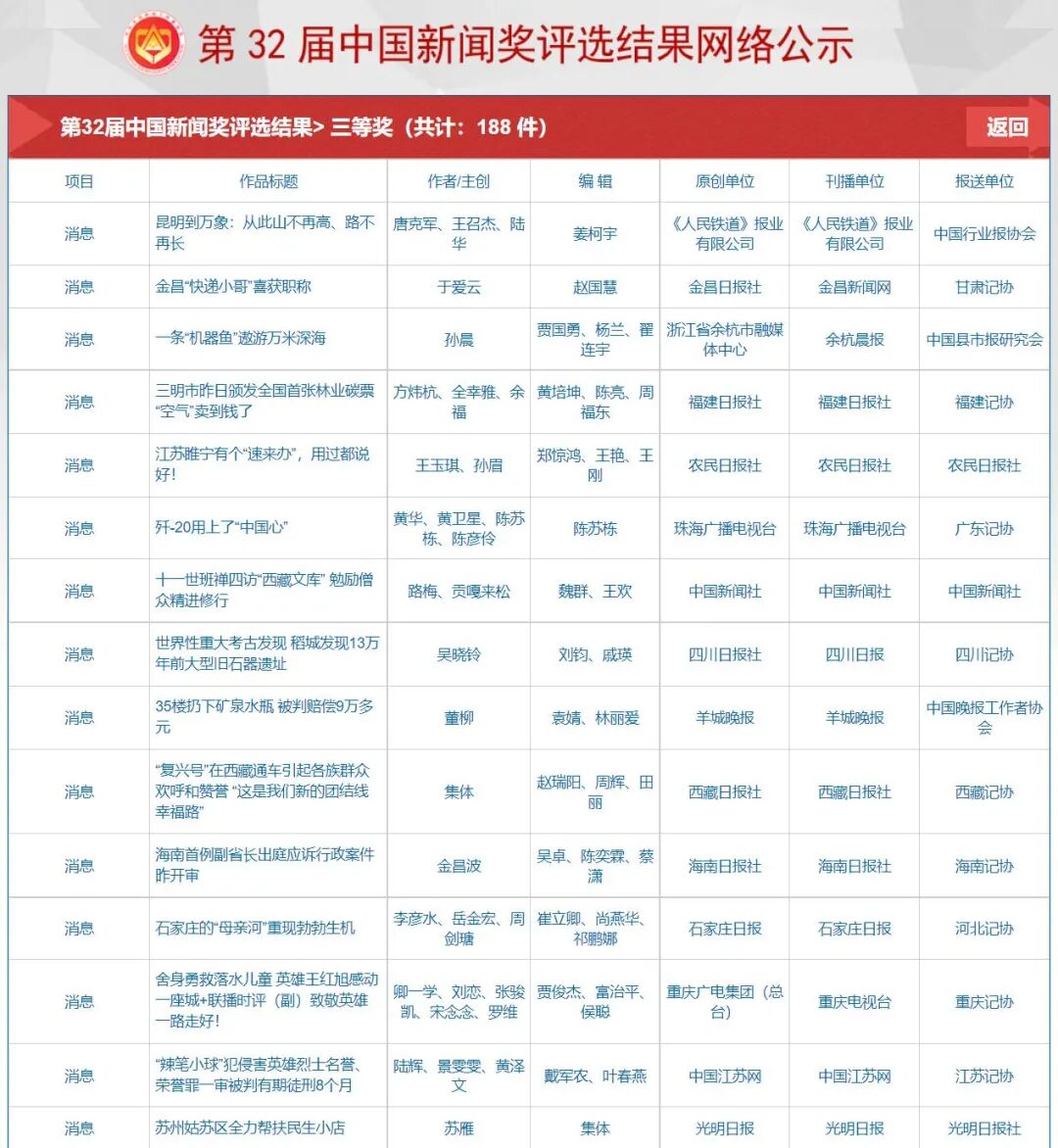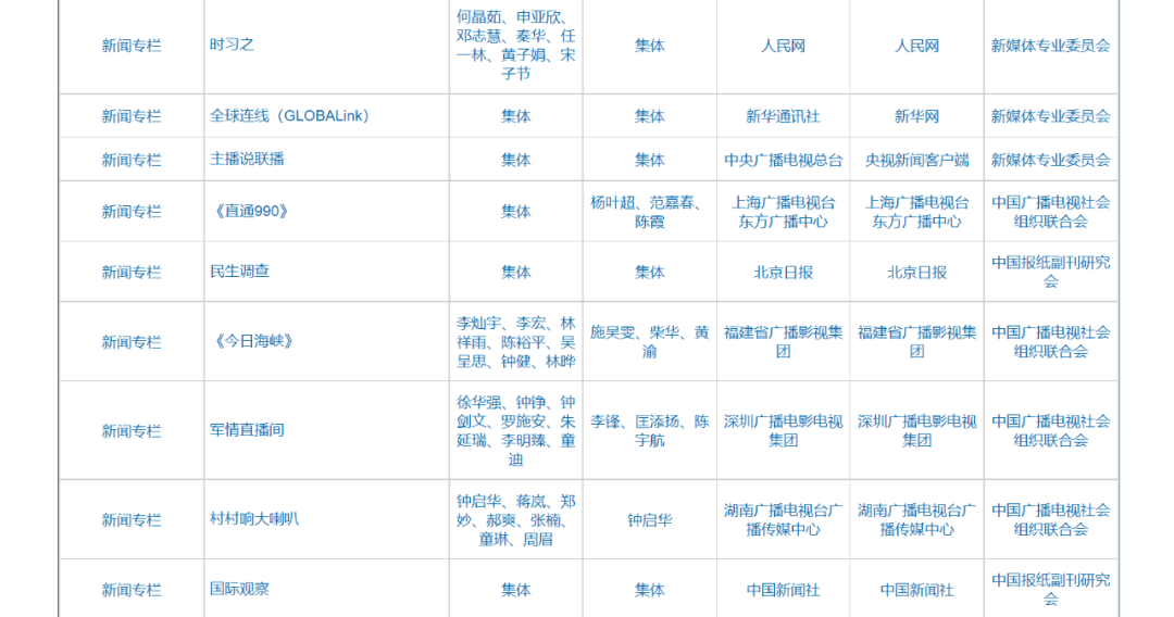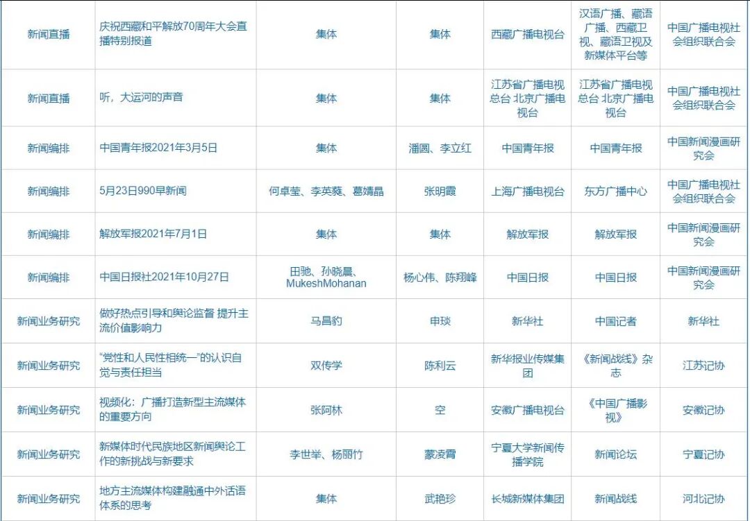 自9月23日起,中国记协在中国记协网、新华网公示第32届中国新闻奖、第17届长江韬奋奖评选结果。本届中国新闻奖共评选出380件拟获奖作品,其中特别奖3件、一等奖73件、二等奖116件、三等奖188件;评选出长江韬奋奖拟获奖者20名,其中长江系列10名、韬奋系列10名。同时公示的还有本届《中国新闻奖、长江韬奋奖评选细则》和评委名单。