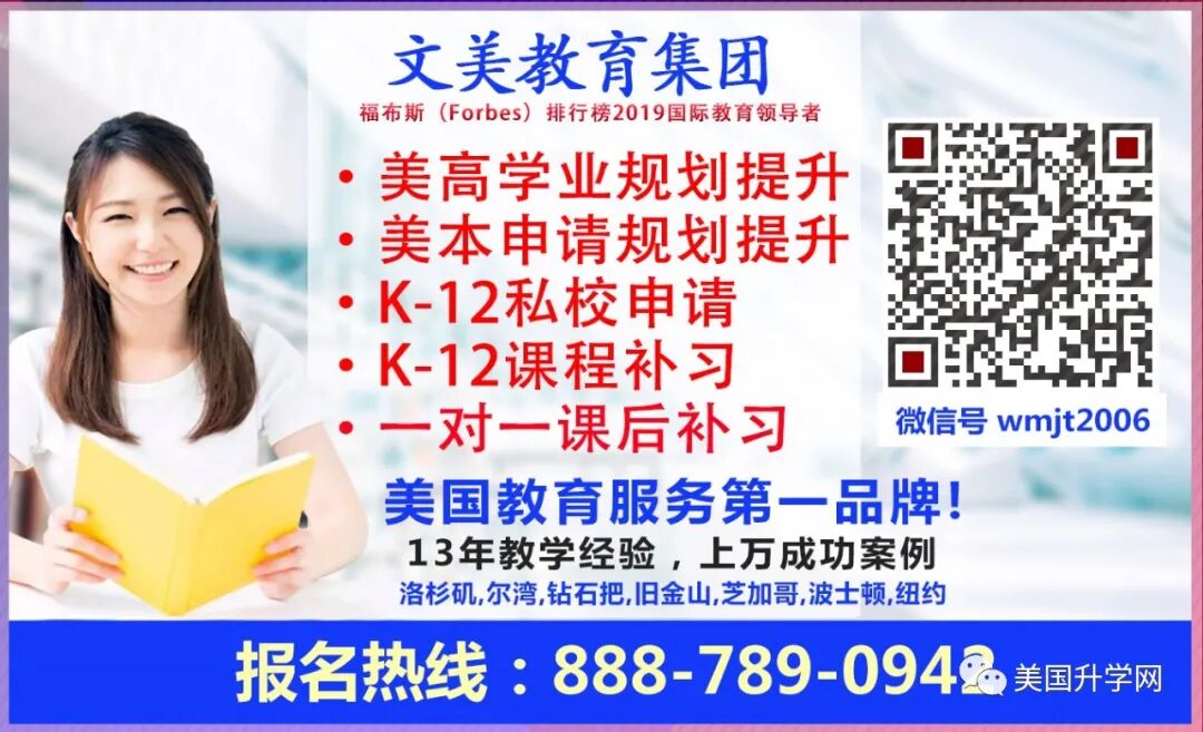 文美主要服务内容有:七八年级就可以开始的美国大学申请规划服务,SAT ACT等标化考试培训,K到12年级私校申请及课后补习。文美集团最富盛名的就是其导师制服务模式,不同于其它机构辅导老师变动频繁的现象,文美集团所有导师都是公司合伙人级别,且在文美工作十年以上,拥有硕士或博士学历,这样就能非常稳定和专业的为孩子提供服务了。我相信这也是很多家长在给孩子找规划机构的时候非常注重的一个方面。此外文美集团同时也是美国总统义工奖官方认证机构,和众多美国前五十名牌大学官方项目合作机构,欢迎大家欢迎大家扫码或直接搜索关注文美集团的微信公众号"美国文美“及时了解最新最全的美国升学资讯。同时观众朋友也可以在Youtube直接搜索节目名称“美国升学直通车”和“文美大学申请规划”这两个节目名称,查看我和万博士的往期节目内容。如果想跟文美客服互动,请在节目播出期间,扫描屏幕左下角的文美客服二维码,或直接搜索微信号wenmeijituan的全拼音,文美咨询热线:1-888-789-0942