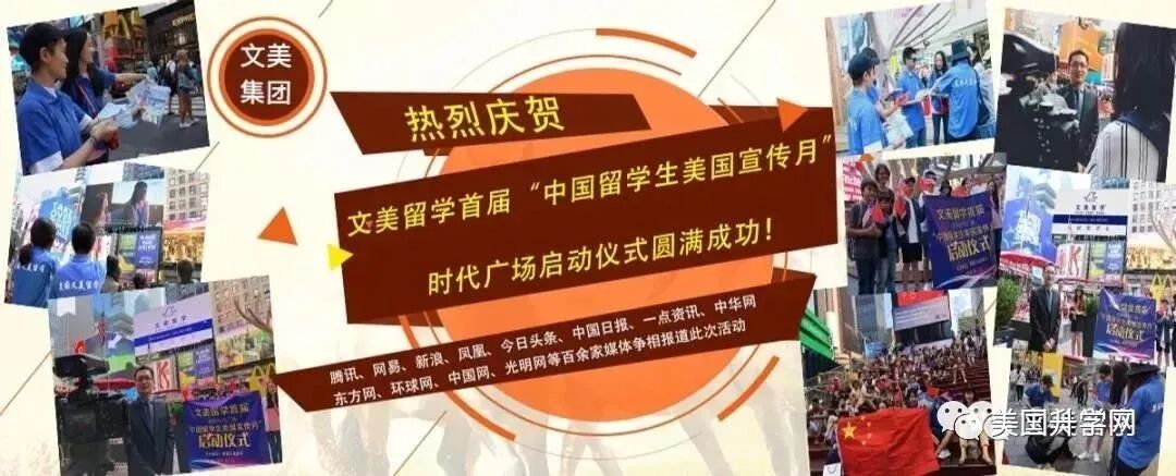 文美集团独家主办,北美留学生日报承办的 中国留学生2018美国宣传月 活动 在纽约时代广场盛大启动。宣传中国留学生正能量,消除美国人对中国留学生的一些刻板印象,为中美关系融合做贡献!时代广场大屏24小时连续一个月滚动播出文美留学第13届中美国际电影节获奖影片《我的留学故事》。此次活动得到了凤凰卫视,腾讯,新浪,网易,今日头条以及美国主流媒体报道,达到了树立中国留学生良好品格的效果。